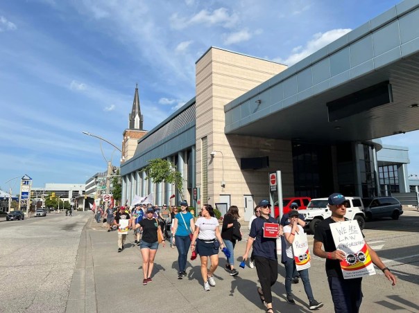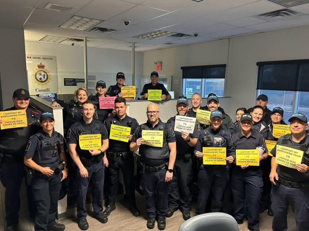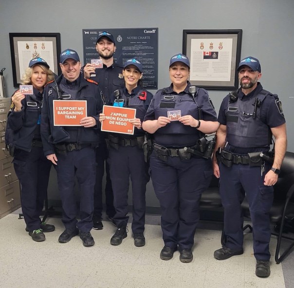 Members at the Windsor Detroit tunnel supporting the bargaining team.